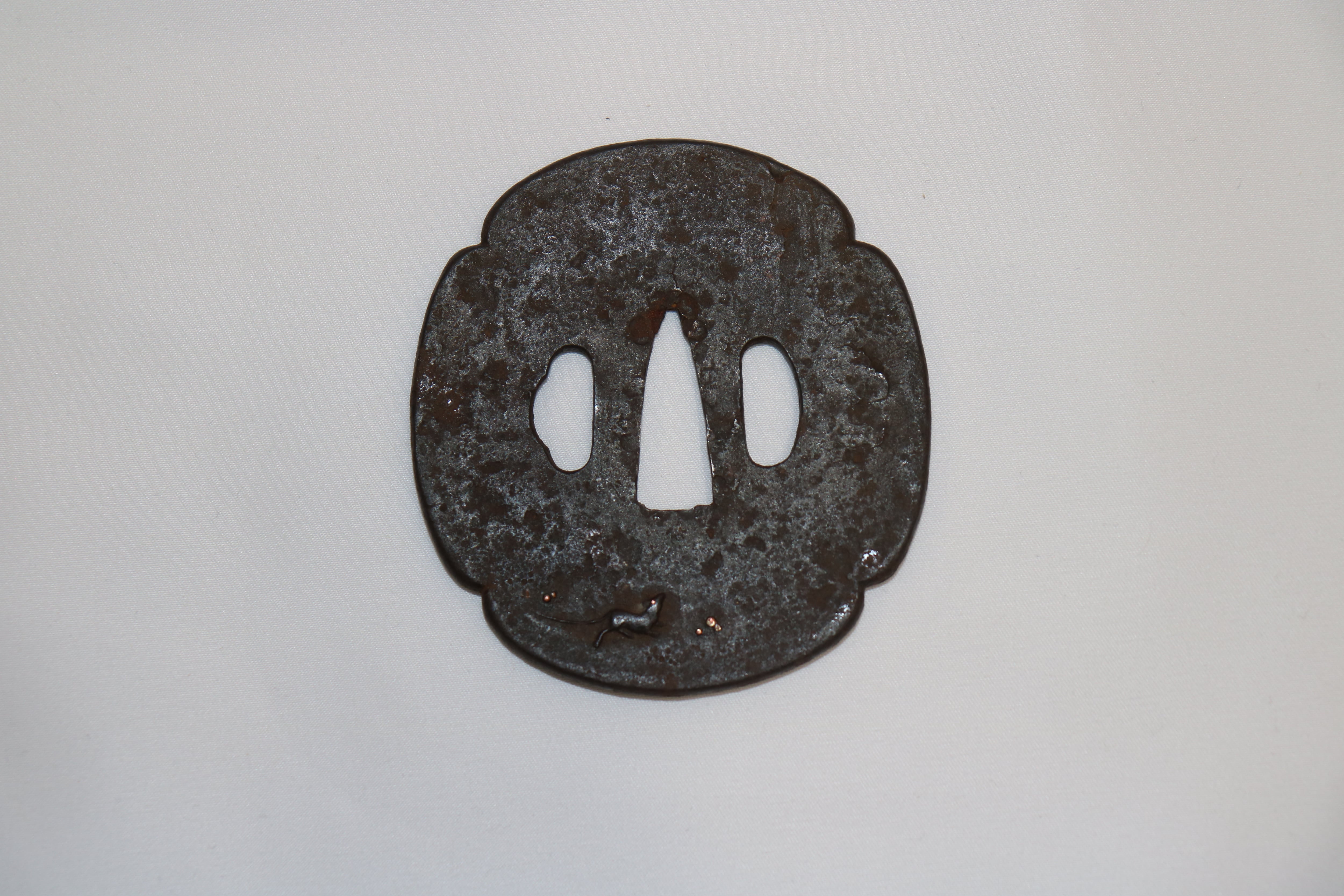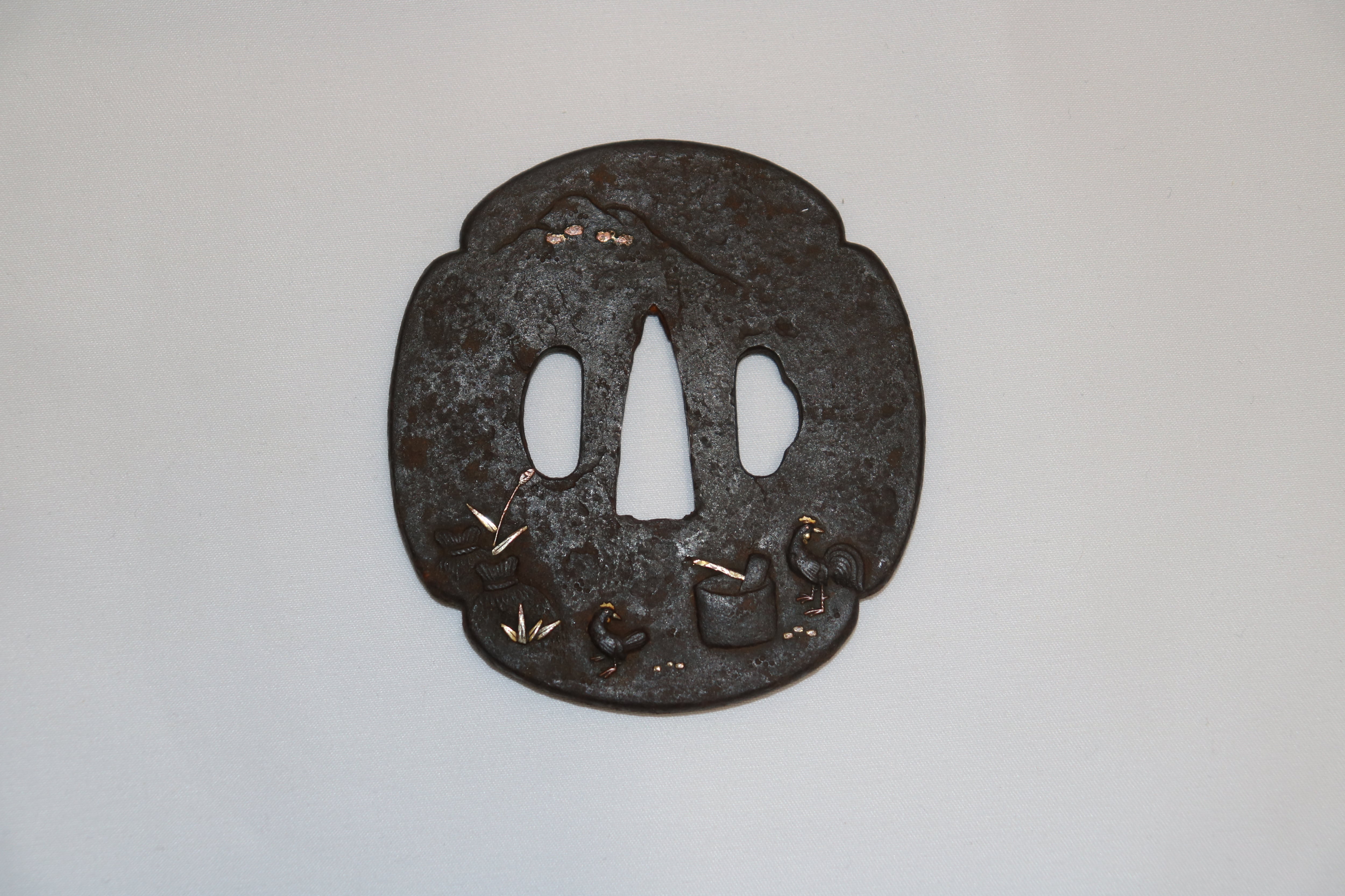 鉄磨き地、親子鶏を図案化した作品。