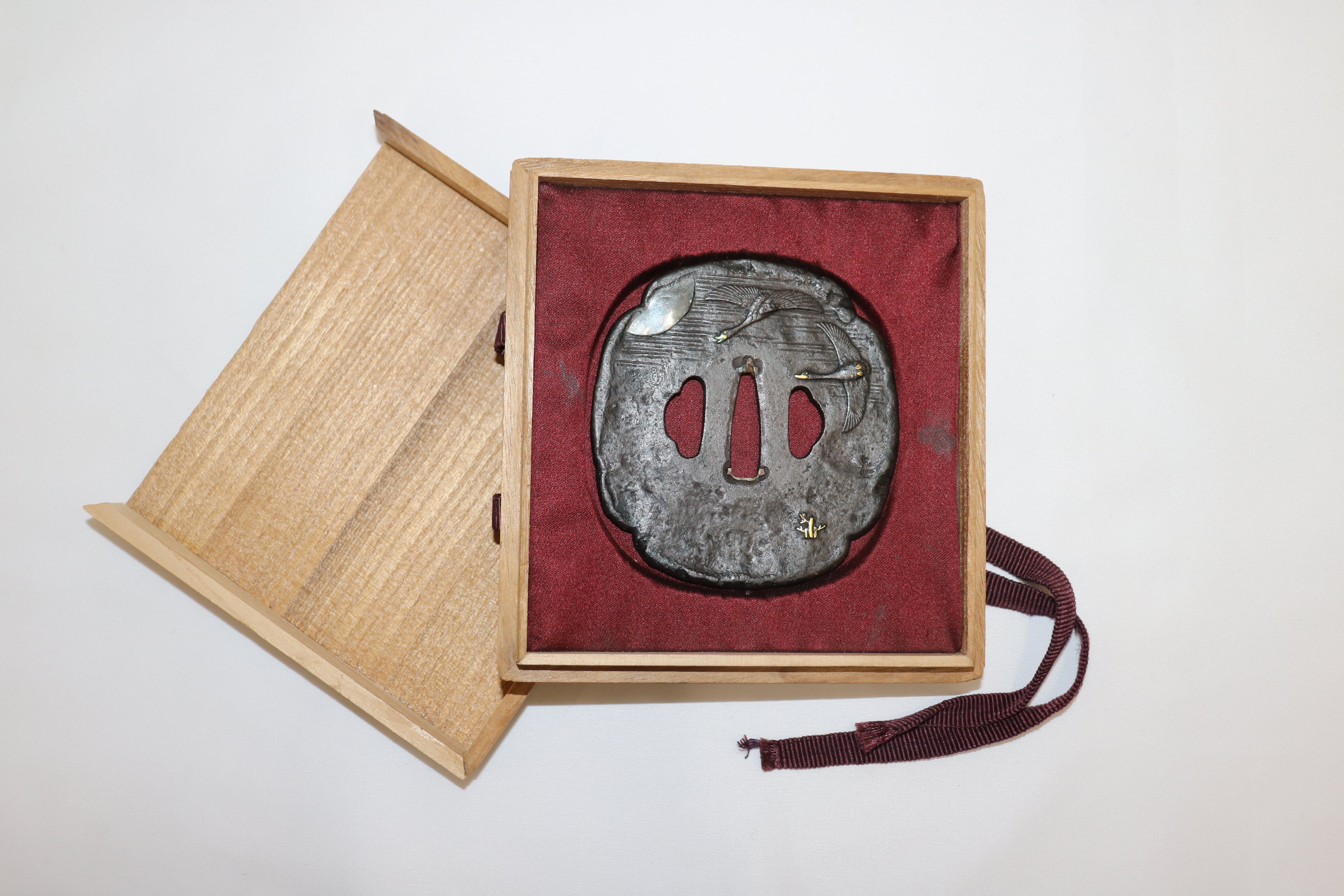 鉄地、月と雁を図案化した大型の作品です。