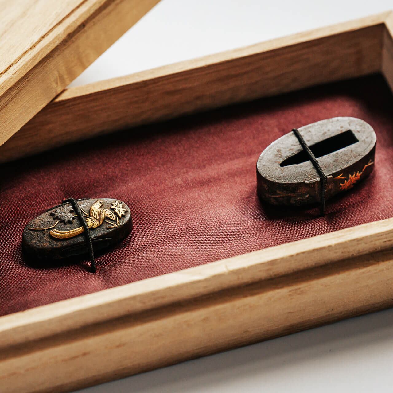 縁頭(ふちがしら)は、柄(つか)に付けられる刀装具である縁と頭のセットの総称。拵(こしらえ)の最先端部である頭は、鞘尻(さやじり)の鐺(こじり)と共に拵の強度を高める目的から装着された物です。